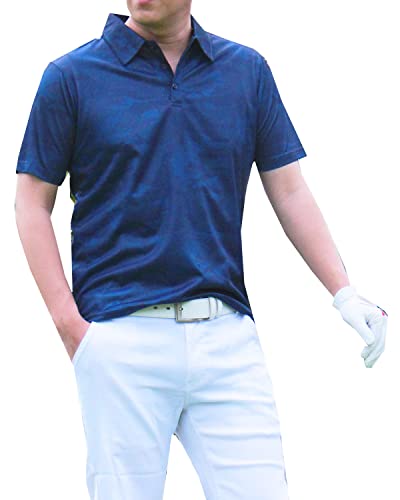 [トップイズム]ポロシャツ ゴルフ メンズ ゴルフウェア 速乾ドライメッシュ ストレッチ 半袖 カモフラ 迷彩 マリン 総柄 スポーツ 春夏 2-ネイビーカモフラ LLサイズ